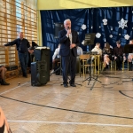 Tradycyjnie wspólne śpiewanie odbyło się przy akompaniamencie instrumentów: na gitarze zagrał Pan Dyrektor Bogusław Łazik, na trąbce zagrał nauczyciel przedmiotów zawodowych Pan Piotr Meroń oraz na klarnecie zagrał uczeń klasy III TMRiA Janek Jabłonka.