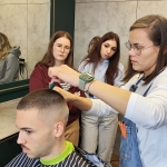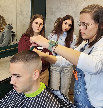 Pani Natalia z ogromna pasja i zaangażowaniem wprowadziła naszych uczniów w tajniki perfekcyjnie wykonanej fryzury męskiej typu SKIN FADE.